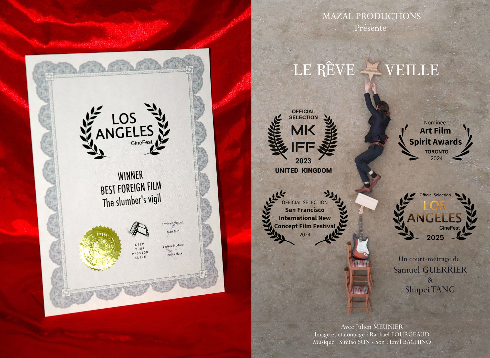LE REVE VEILLE (THE SLUMBER'S VIGIL) Court-métrage de Samuel GUERRIER et Shupei TANG Et si votre pire ennemi n'était autre que vous-même... Prix : BEST FOREIGN FILM # LOS ANGELES CINEFEST 2025